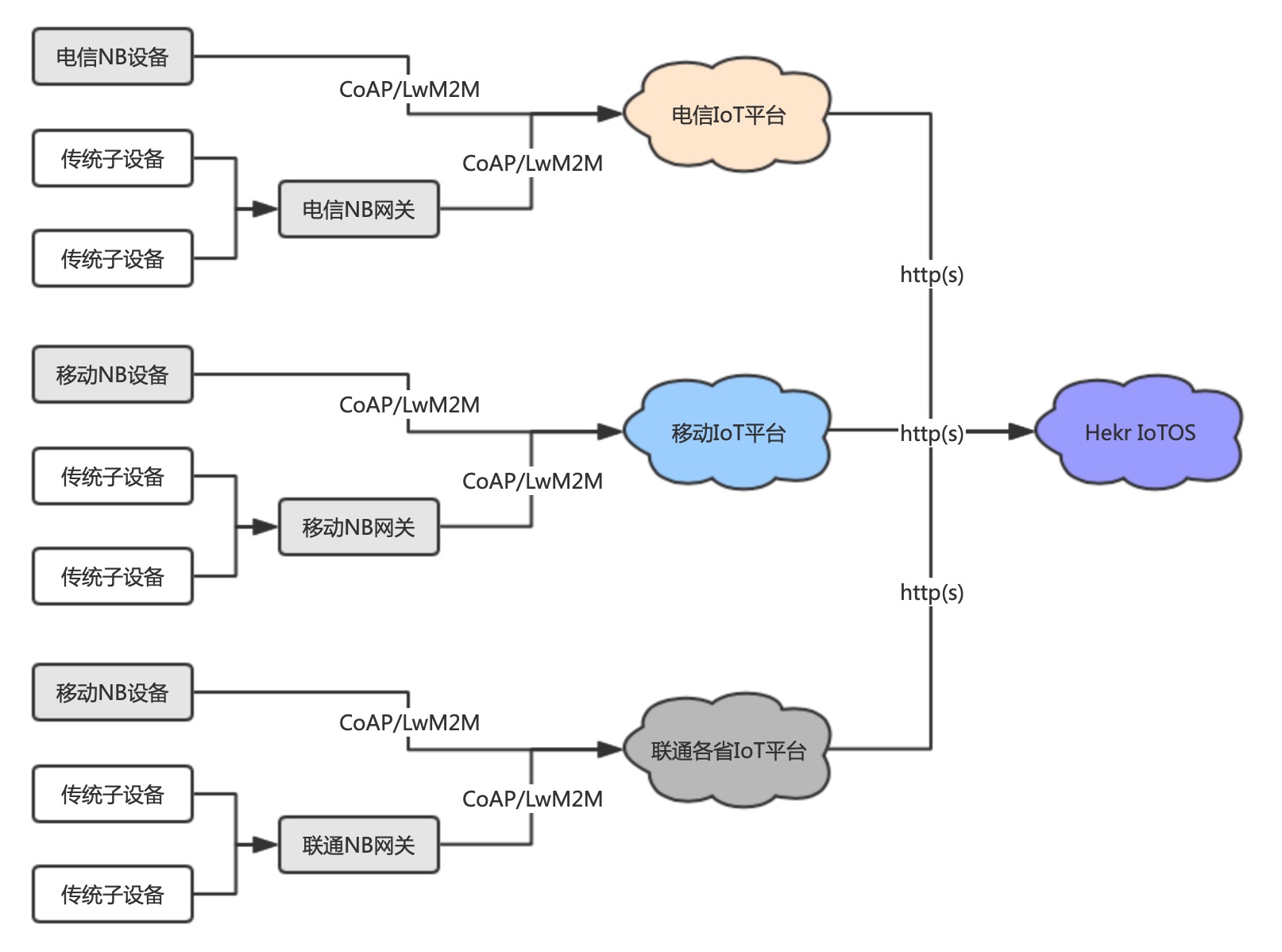 - 设备先连接到运营商平台,再使用 HTTP(s) 交互协议转发给应用后端