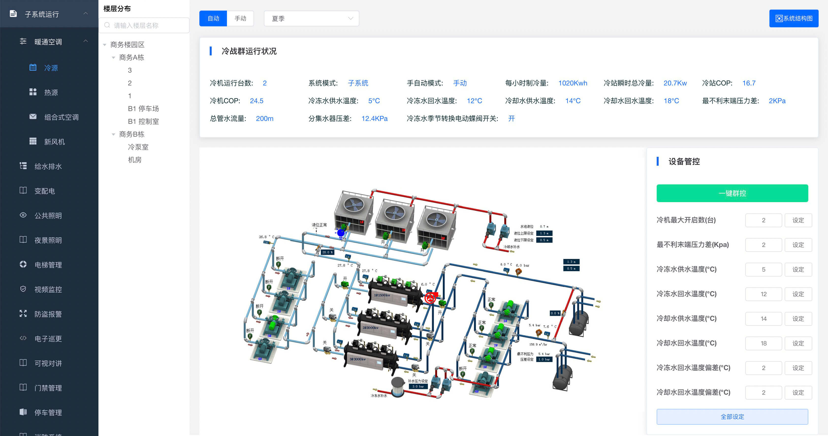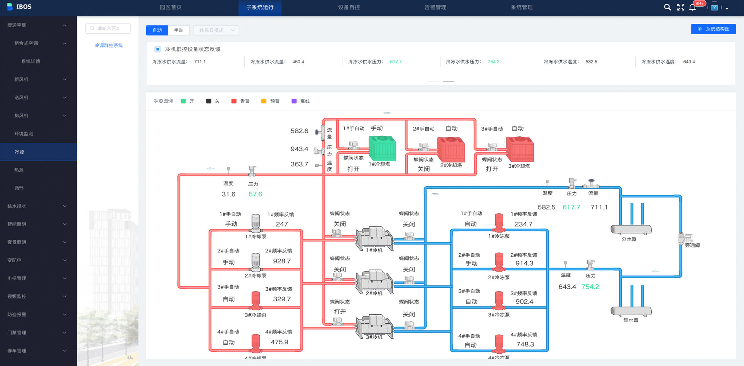 覆盖楼宇自控、消防、安防、能源、梯控、停车、照明、门禁等众多系统,实时获取点位状态、报警、故障等信息,图形化展示,保障建筑安全健康