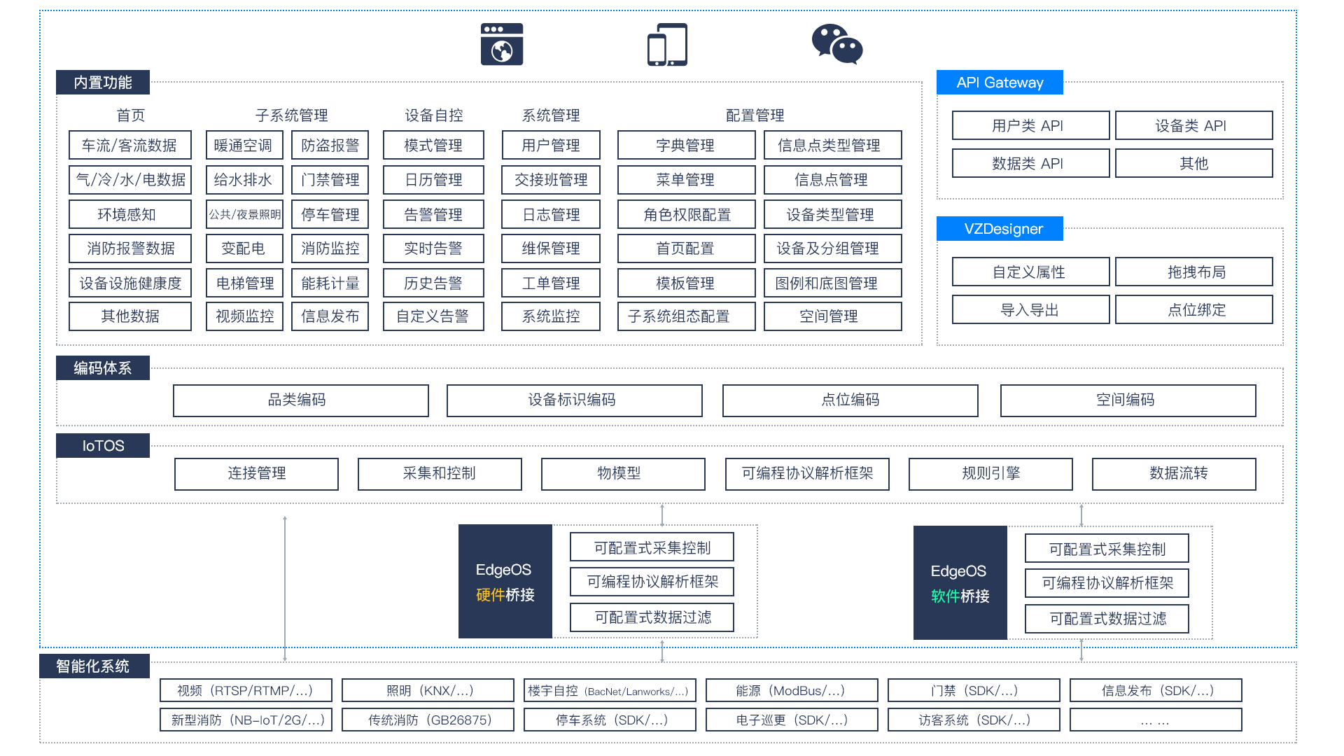 IBOS 基于 IoTOS 和 EdgeOS 打造,继承了它们强大的接入集成能力,对于传统和新型的建筑智能化系统均有极强的适配能力