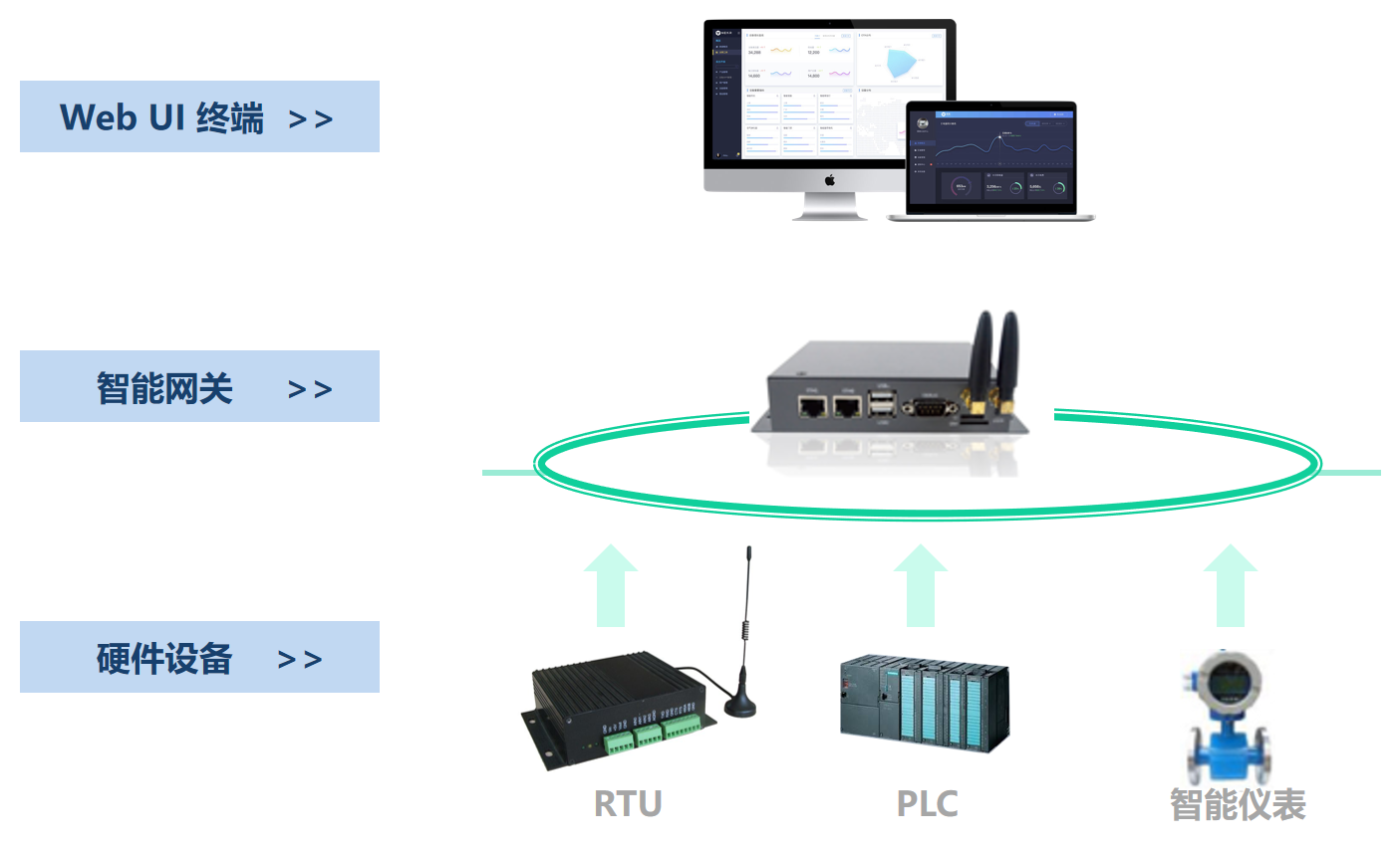 工业网关是一款基于物联网架构设计的工业级嵌入式软硬件一体化设备。可实现工业现场各种设备的数据采集,存储,转发,系统维护,域名管理等功能,用户可在PC,手机上使用浏览器进行数据监控和参数配置。该网关可广泛应用于光伏电站,风电站,小水电,配电室,抽油机,灌区,管道,环境监测站,消防监控室,农业大棚,空气监测站,实验室,工控中心,无人值守站等场站监控和园区能源管理系统,各种在线监测系统等。 工业网关在智慧工厂中的典型应用场景: