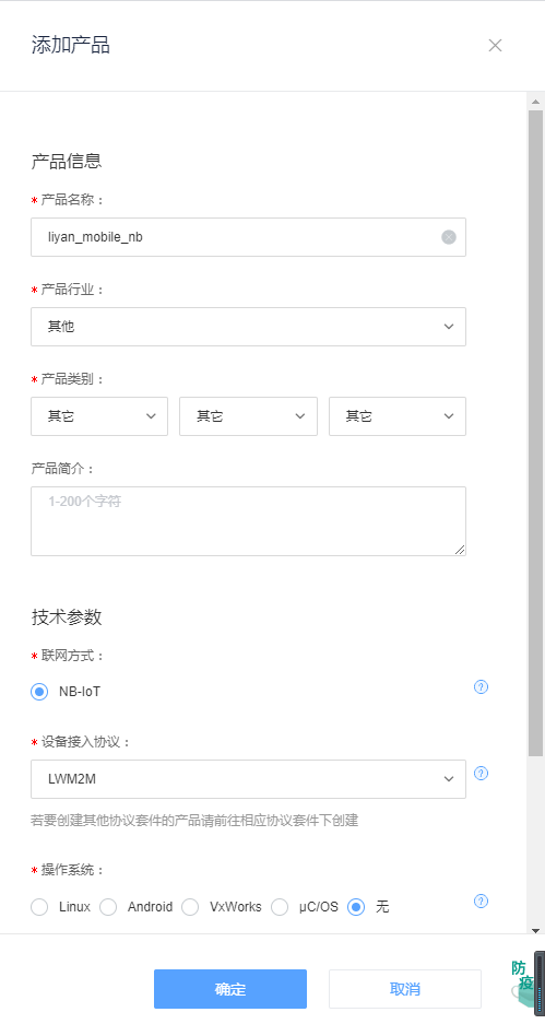 【步骤】:【NB-IoT物联网套件】 - 【添加产品】